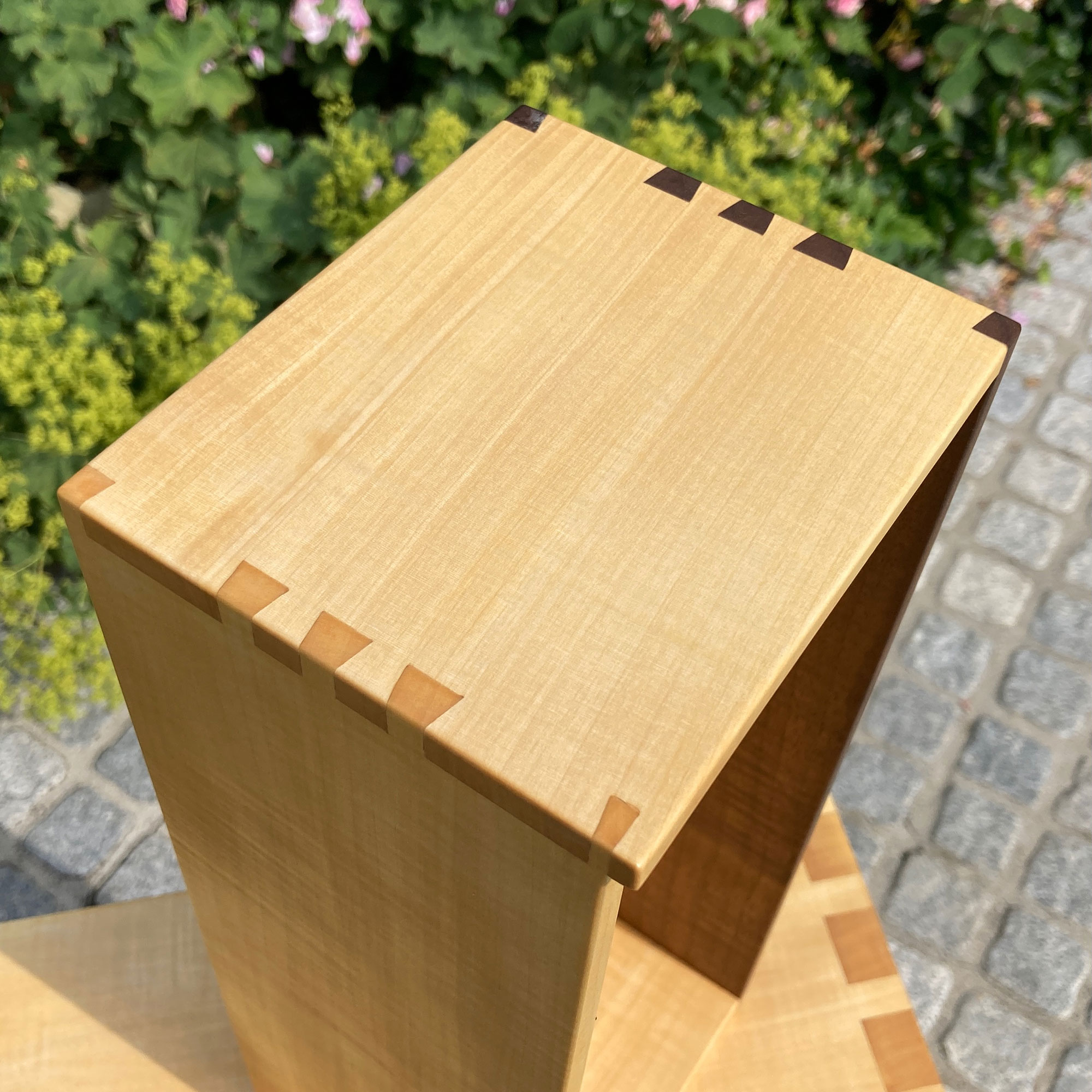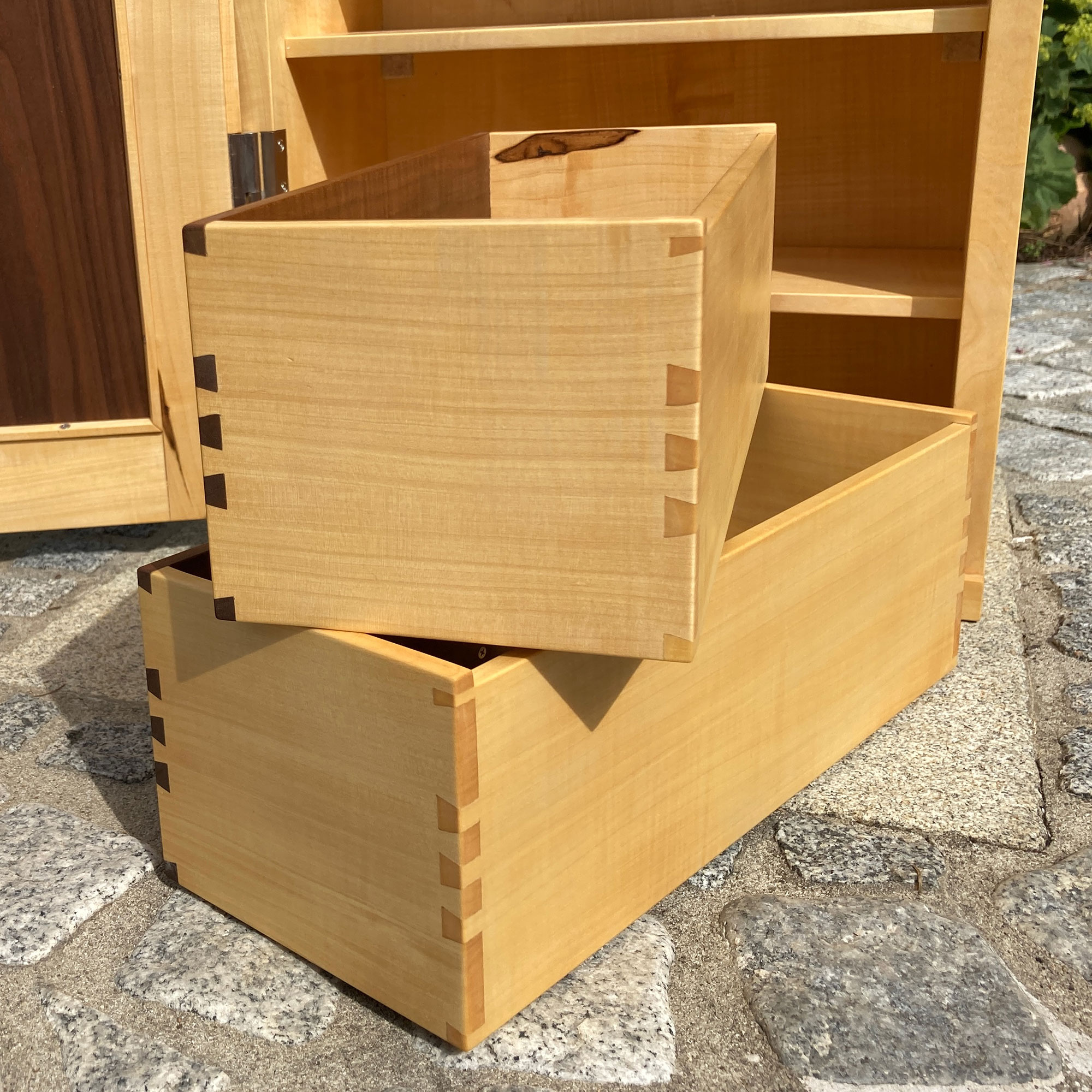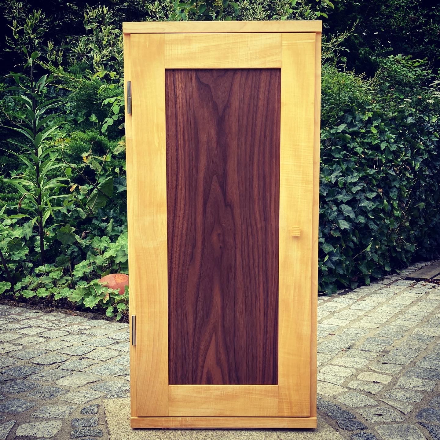 Die Kastanie schützt den Inhalt des Medizinschränkchens. Kleine Schütten, vorn aus Nuss, zum Herausnehmen. schlicht, und mit ein paar feinen Details. Dieses kleine Möbel wurde speziell zur Aufbewahrung besonderer Substanzen, selbstgerührter Salben und Naturheilmitteln angefertigt. Die Fächer sind verstellbar.
